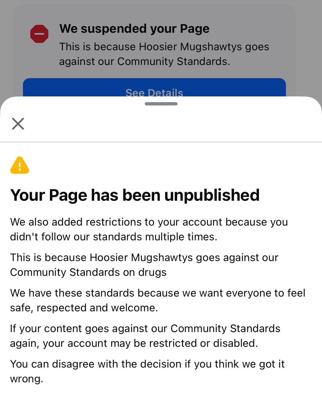 We were suspended this evening after multiple posts were reported falsely for violating community standards. We’ll survive. You can still find the content here, Telegram, and on our X account. Hoosier MugStunnas can still be found on Facebook for now.