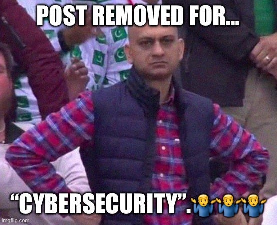 Post taken down for “cybersecurity”.