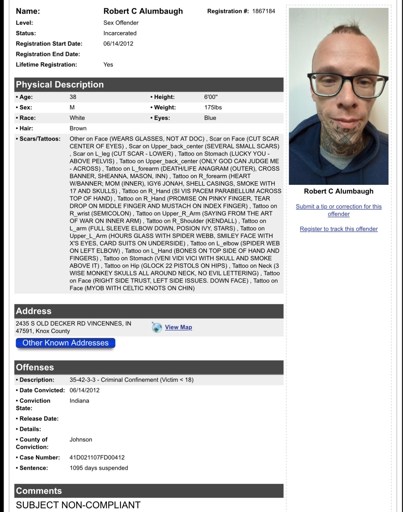 Hoosier MugstunnasRobert C Alumbaugh | Knox County | ๐จ Sexual Predator Alert ๐จ Hoosier MugsApr 04, 2026ShareChargesCONFINEMENT